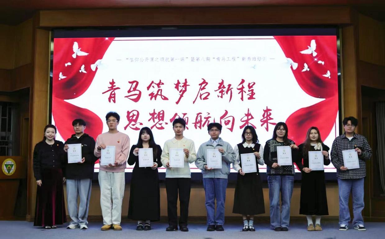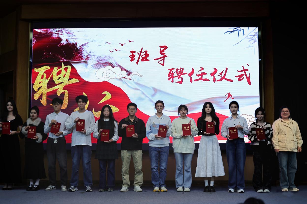 随后进行的分团委学生会换届仪式上,分团委书记江晶老师为上一届学生干部颁发荣誉证书,并宣读新一届学生会干部任命名单。上一届分团委副书记张正扬和执行主席张豪杰分别上台将象征着服务同学、奉献校园的“五四红旗团委牌匾郑重交予新一届学生干部。新一届学生干部通过集体朗诵《薪火相传,青春启航》,承诺将秉持初心、务实笃行,为构建更加团结向上的校园氛围贡献青春力量。