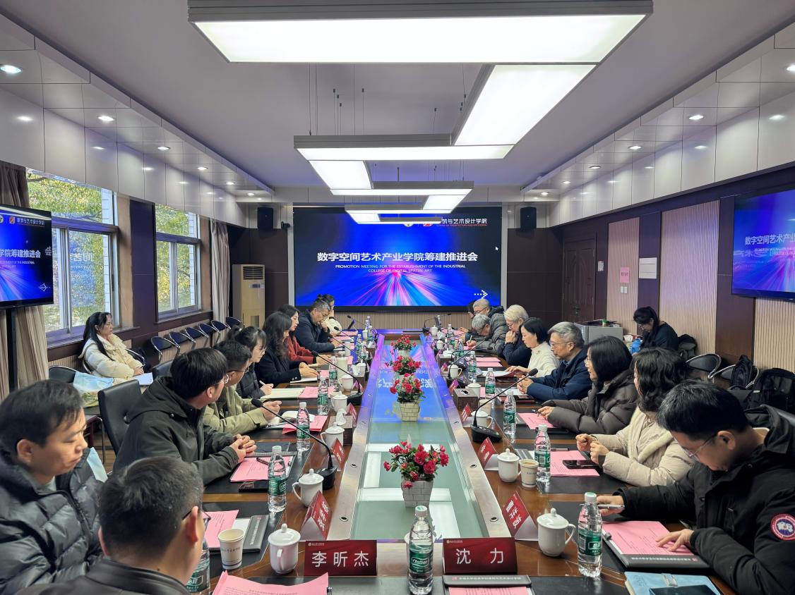 1月14日上午,东南大学成贤学院数字空间艺术产业学院筹建推进会在真知馆207会议室顺利召开。会议邀请浦口区人民政府泰山街道、六合区人民政府横梁街道、江北新区浦口文联以及南京市园林规划设计院有限责任公司、北京市市政工程设计研究总院江苏分院、江苏原力数字科技股份有限公司、南京逐鹿景观工程有限公司、江苏维伍喔飞信息科技有限公司等政府机构、行业协会与行业龙头企业代表,共同研讨产业学院建设路径。学院副院长戴玉蓉,质保处处长管平、副处长曹洋波,建筑与艺术设计学院党政领导以及相关专业负责人和教师代表出席会议。